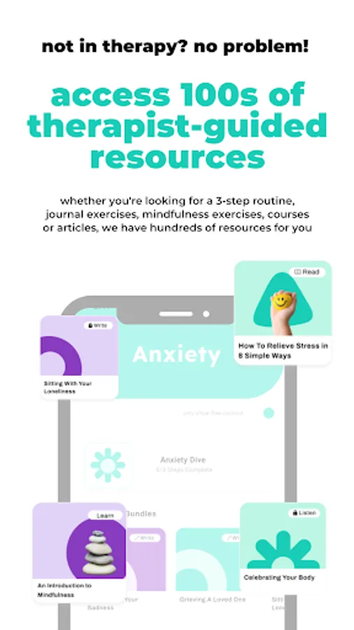 The DiveThru app is filled with hundreds of tools created by licensed therapists that are designed to help you lead a mentally healthier and more fulfilling life. These resources include: