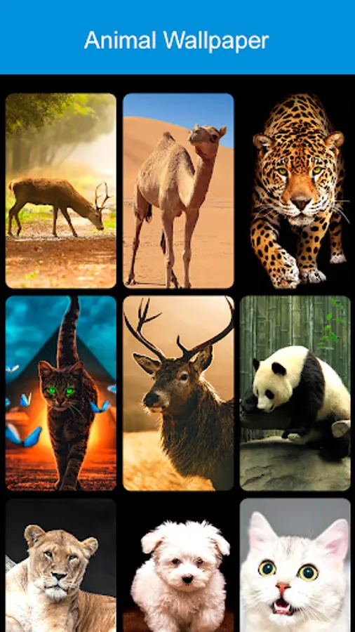 This app gives you access to many cute animal hd wallpapers for animal lovers. Also you can enjoy Cute Panda Wallpaper, Cute puppy wallpapers, Horse hd wallpapers, lion hd wallpapers, Cute Cat wallpapers, Tiger wallpapers, Wolf hd wallpapers, Elephant Wallpapers, Deer Wallpapers and many more Animal backgrounds.