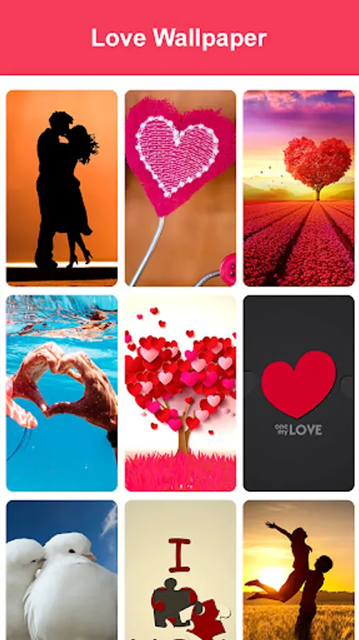 This app gives you access to many cute and beautiful love wallpapers for couples, lovers, moments, Love hearts, Rose flowers wallpaper, relaxing wallpapers, red wallpapers, I love you wallpapers, pink wallpapers, big red heart wallpapers, Valentine's day and many more romantic backgrounds.