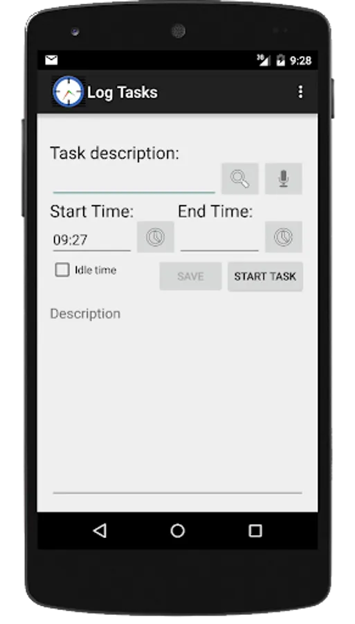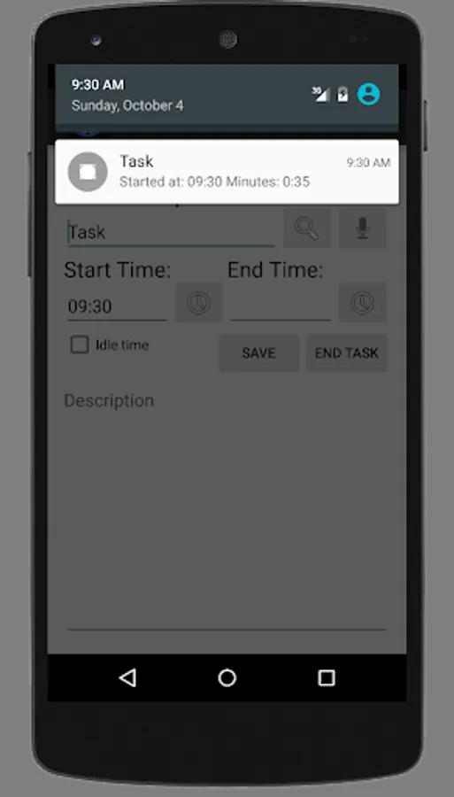 - Starting a new task will automatically end the previous one. You can enter the name at the bottom of the screen.