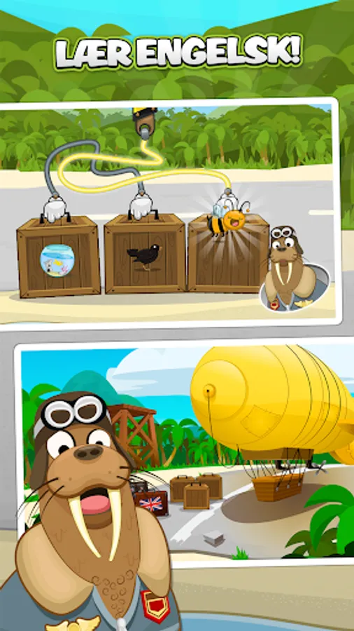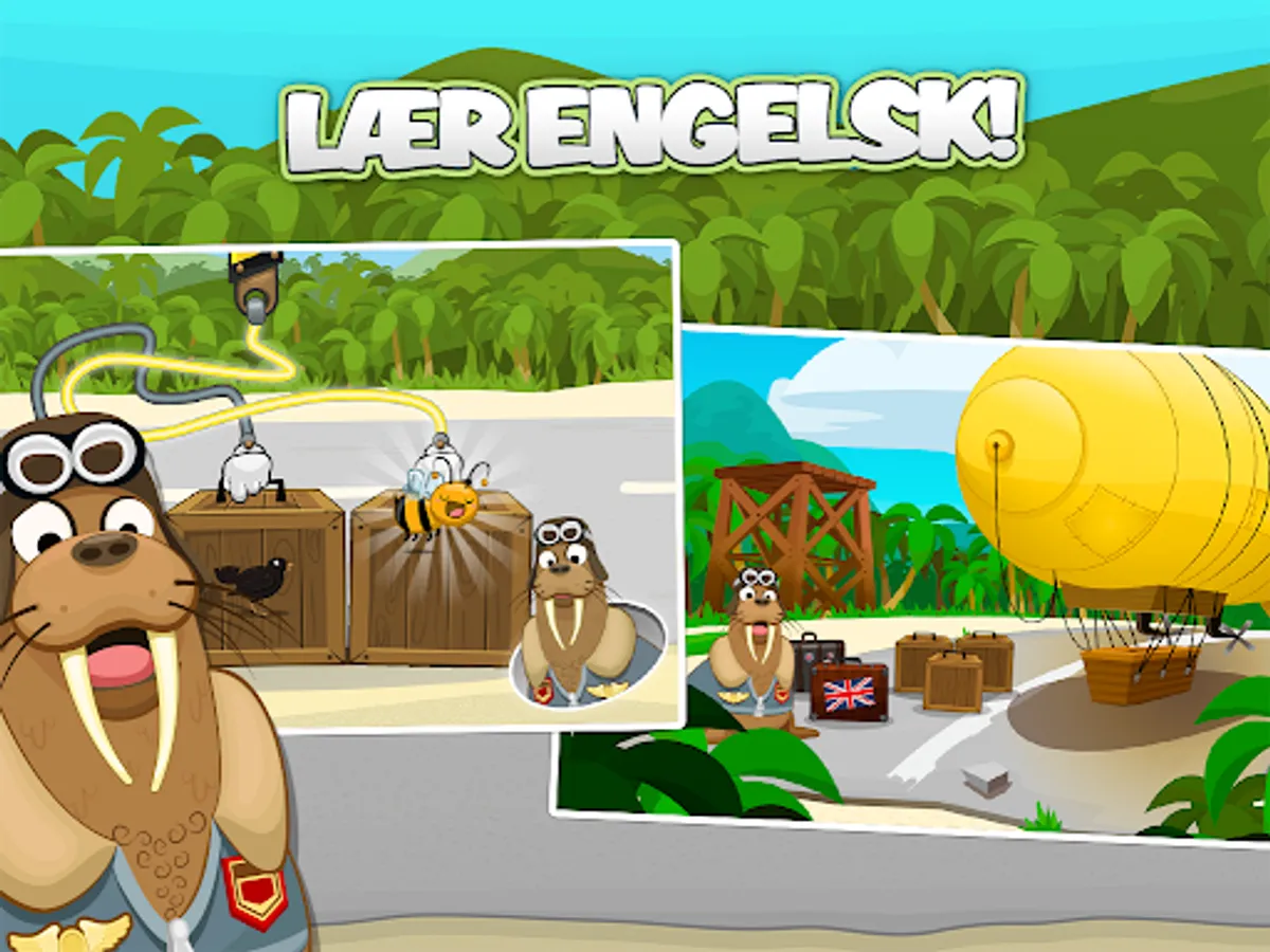 Captain Hvalros has landed with his airship and he has his suitcase full of English words