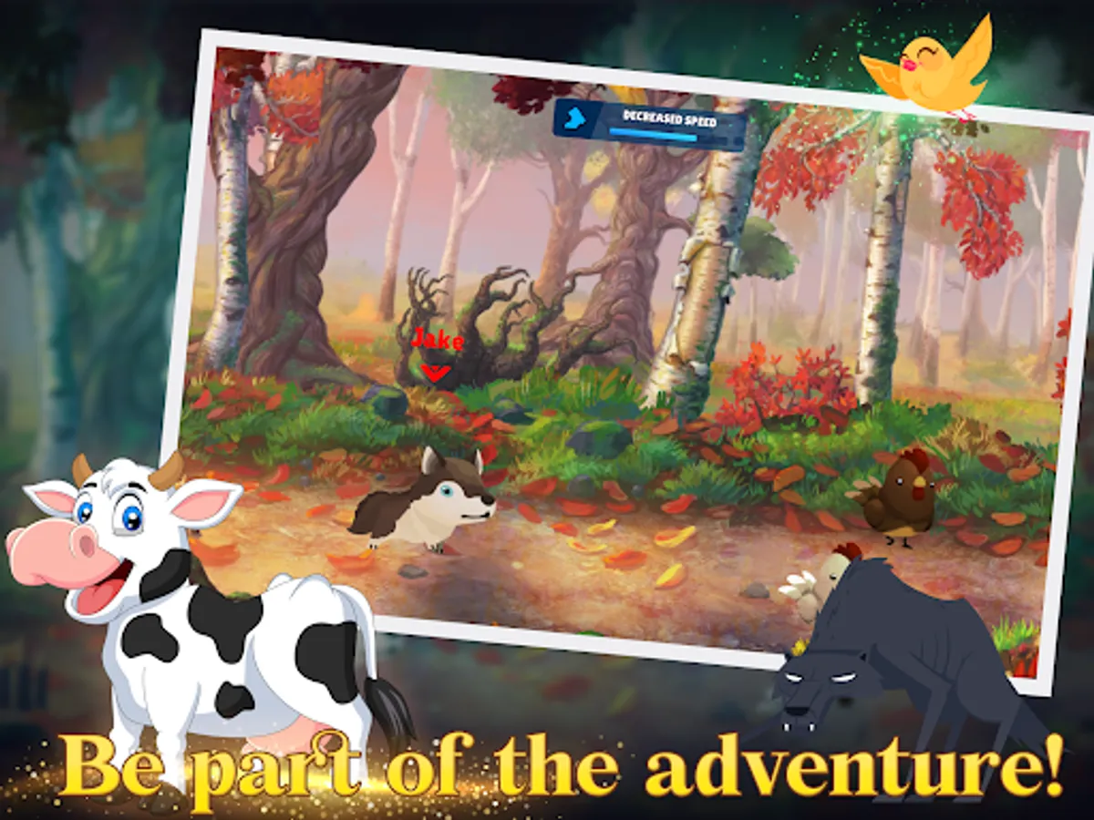 You'll never get bored! Every time you press the play button, a new environment and character will appear. The game features over 20 characters, including baby animals and two types of wolves.
