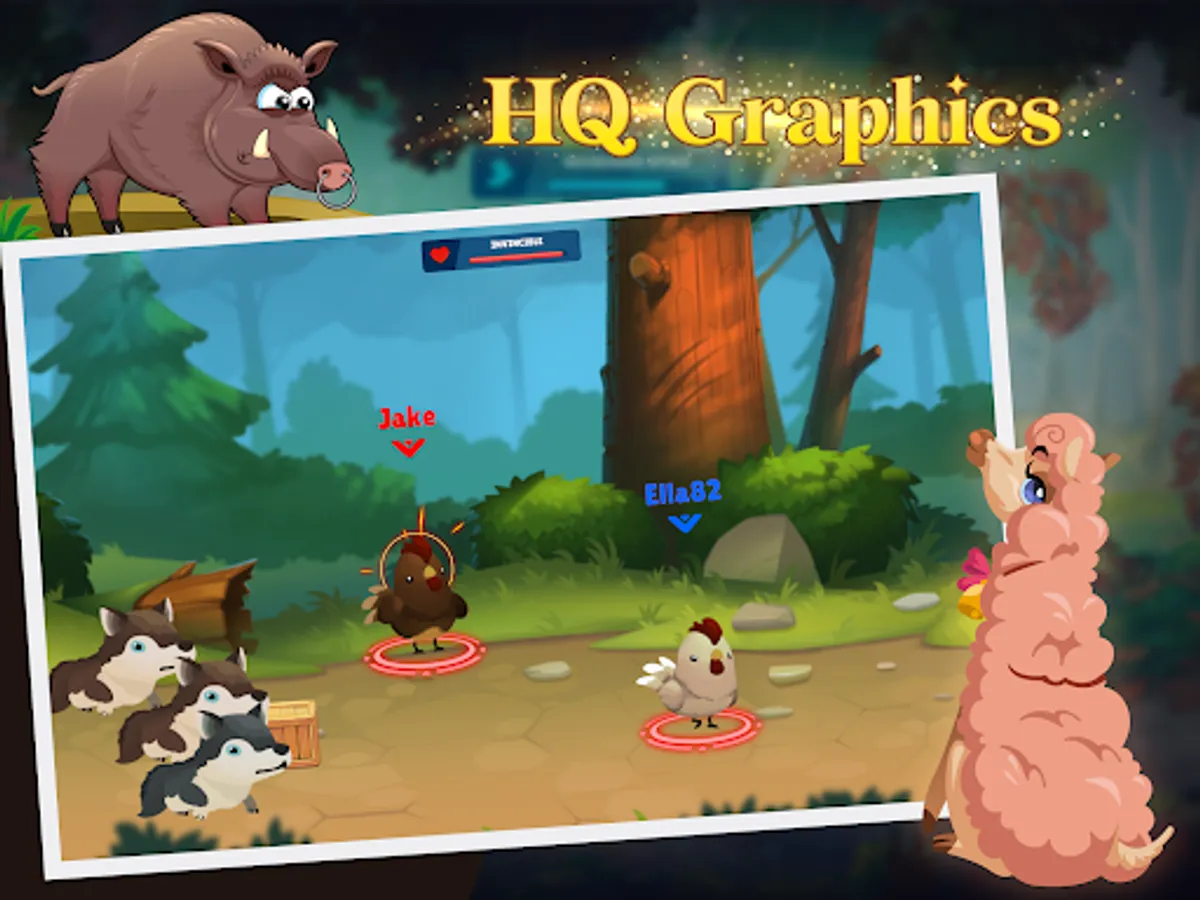 - 10+ types of animals to play, including pigs, alpaca, ducks, wolves, bulls, chickens, goats and boars