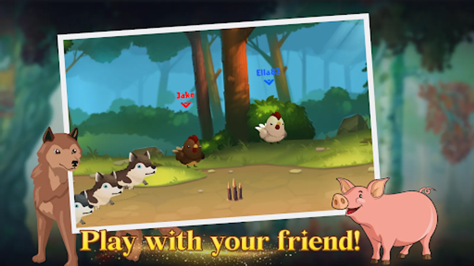You can play as the Big Bad Wolf, Little Red Riding Hood, or farm animals. You can also switch to multiplayer modes, which allow you to have two players on the same screen at the same time.