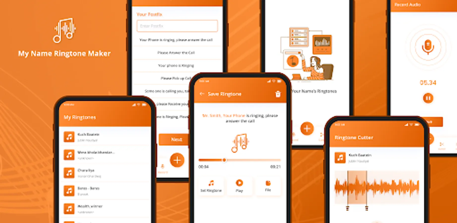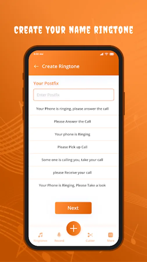 - We are providing you to many postfixed templates so you can just select template and create Ringtone.