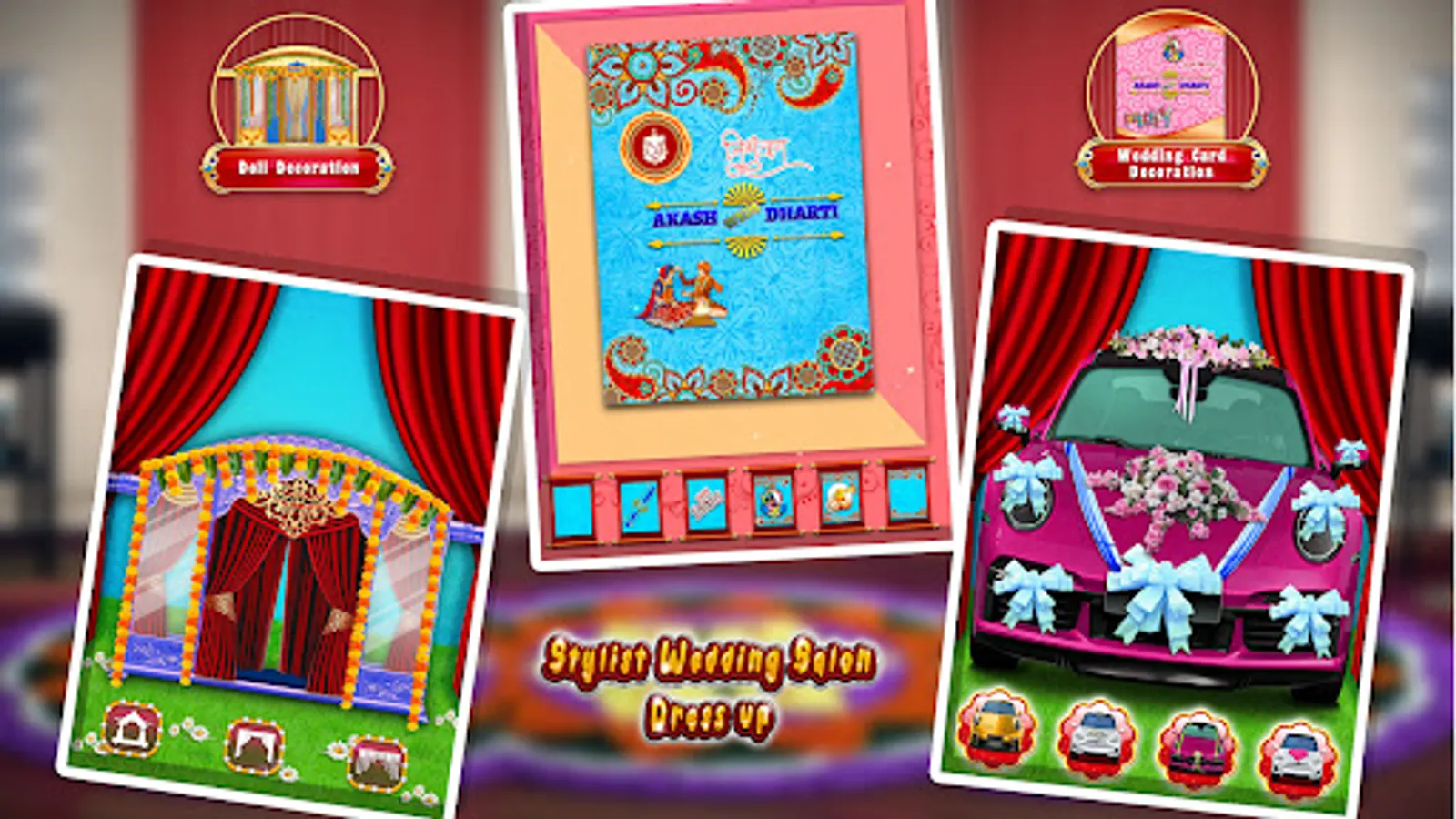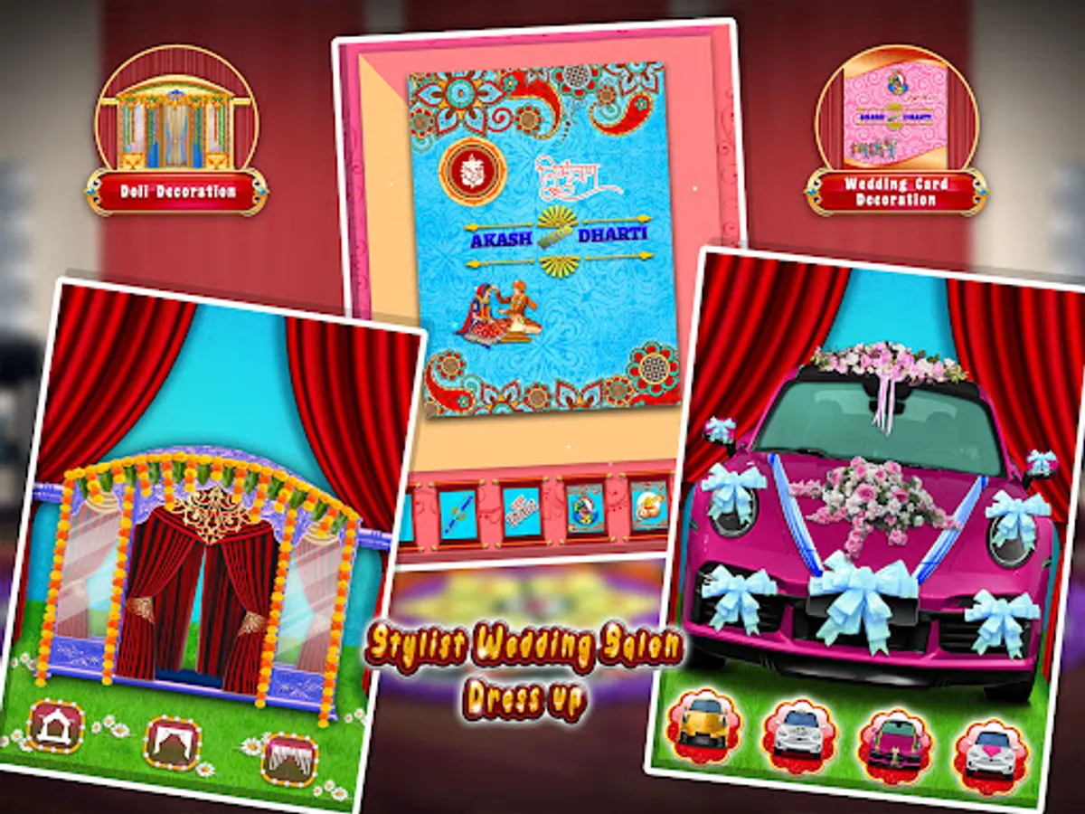 In this Bengali Indian Wedding Game such as hair spa and decoration, face spa and makeup, bride dress up and wedding vows, car decoration, gajra view, doli decoration. Wedding fashion includes Indian Heena mehndi game with Indian Culture Top Beauty Salon where you can try some new Hair DoDesign with hairstyles on fashion doll, photoshoot makeover for Indian girl.