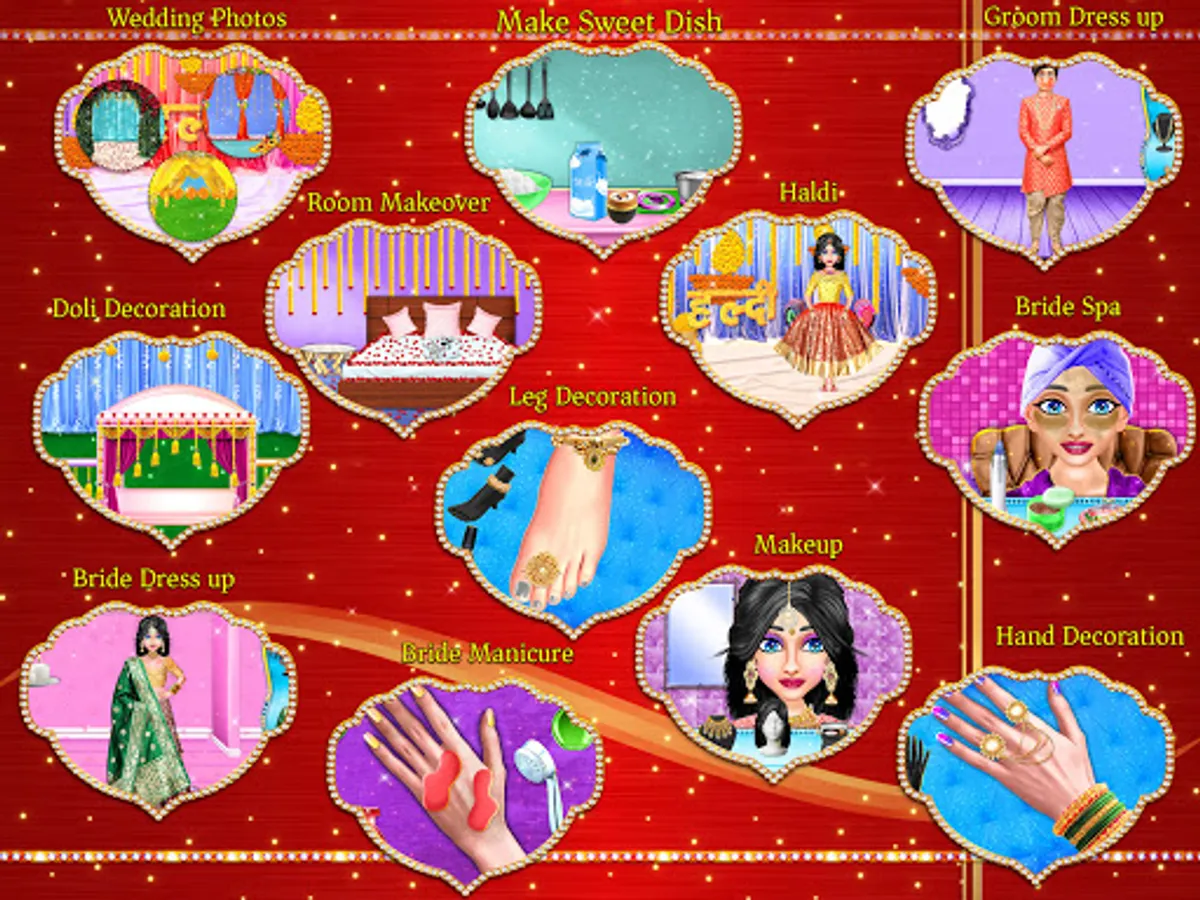 Indian Wedding rituals of big Fat Royal wedding Stylist Salon. Get aware of Royal Indian culture with Indian makeup, spa games and honey hindu couple game for girls. Bride and groom are waiting for international fashion star wedding makeup artist salon.Play all in one package, from dress-up, make up with variety of mehndi designs to amazing ornaments with beautiful Indian designer saree as an outfits for Bride in Fashion Salon games. As after marriage ritual bride have to make a sweet dish for new family as a first time cooking at home. For that make Rice pudding and Flour Pudding to impress new family in this cooking games. Get ready for this country theme makeover.Play this Best Indian Wedding Dress up game with prom girl Makeup and Dress up Doll Salon with Photo-shoot for Indian Princess at different location of destination wedding planner decides.