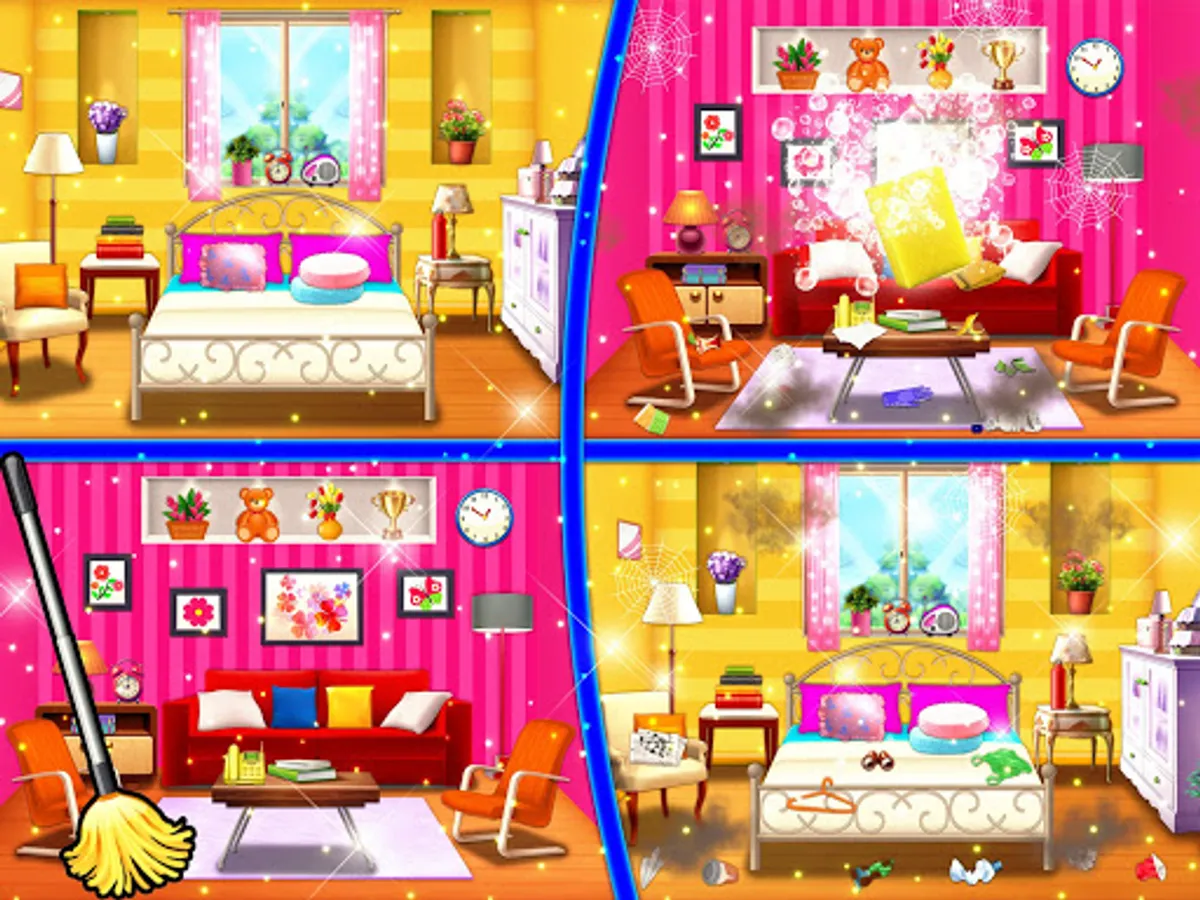 Clean your sweet house with this amazing skilled house cleaning game for girls. The world in keep your house clean best house cleaning and home clean up girl game. Help the girl or your BFF or Mummy to clean up these messy house. Never mess your dream home and take care about decoration through fresh flowers while engaging house little helper with your family members.
