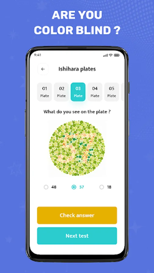 Download our app today to access a complete suite of color blindness tests, eye astigmatism assessment, and eye exercises. Prioritize your eye health and enjoy better vision with our comprehensive solution.