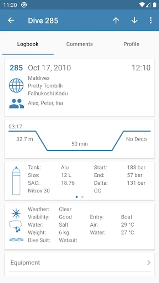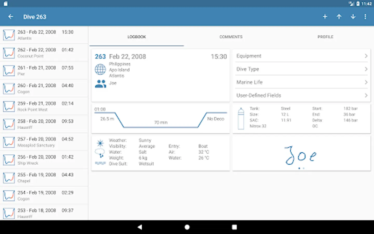 If you are a scuba diver and want to have your logbook always with you, then Diving Log is the right scuba dive log app for you. You can leave your handwritten paper logbook safely at home and still access all your dives.