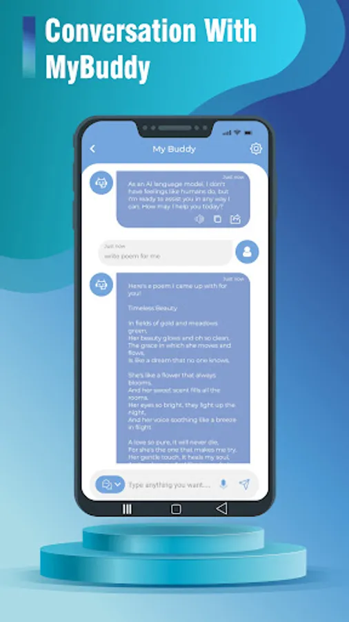 My buddy is a chatbot that can solve anything you want or that can give you an answer to your questions.