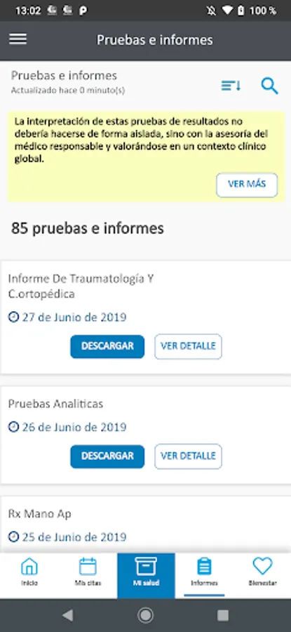 or consult the results of their tests without having to go to your medical center for them. You can download and view reports directly from your mobile.