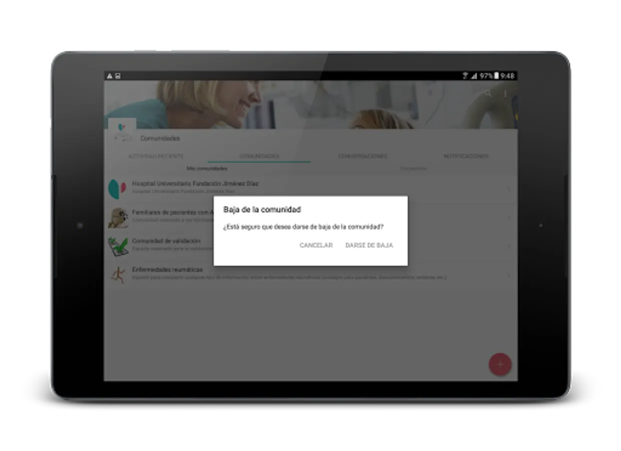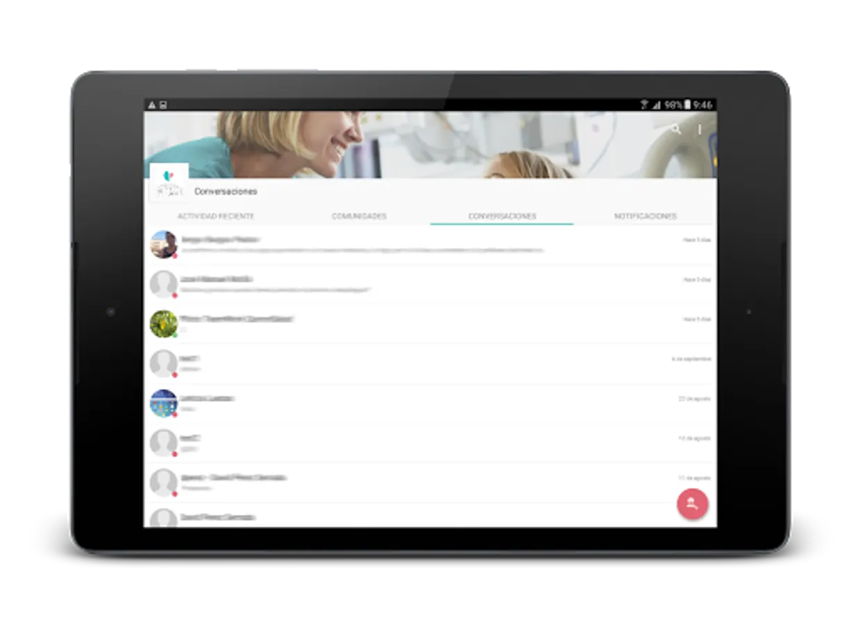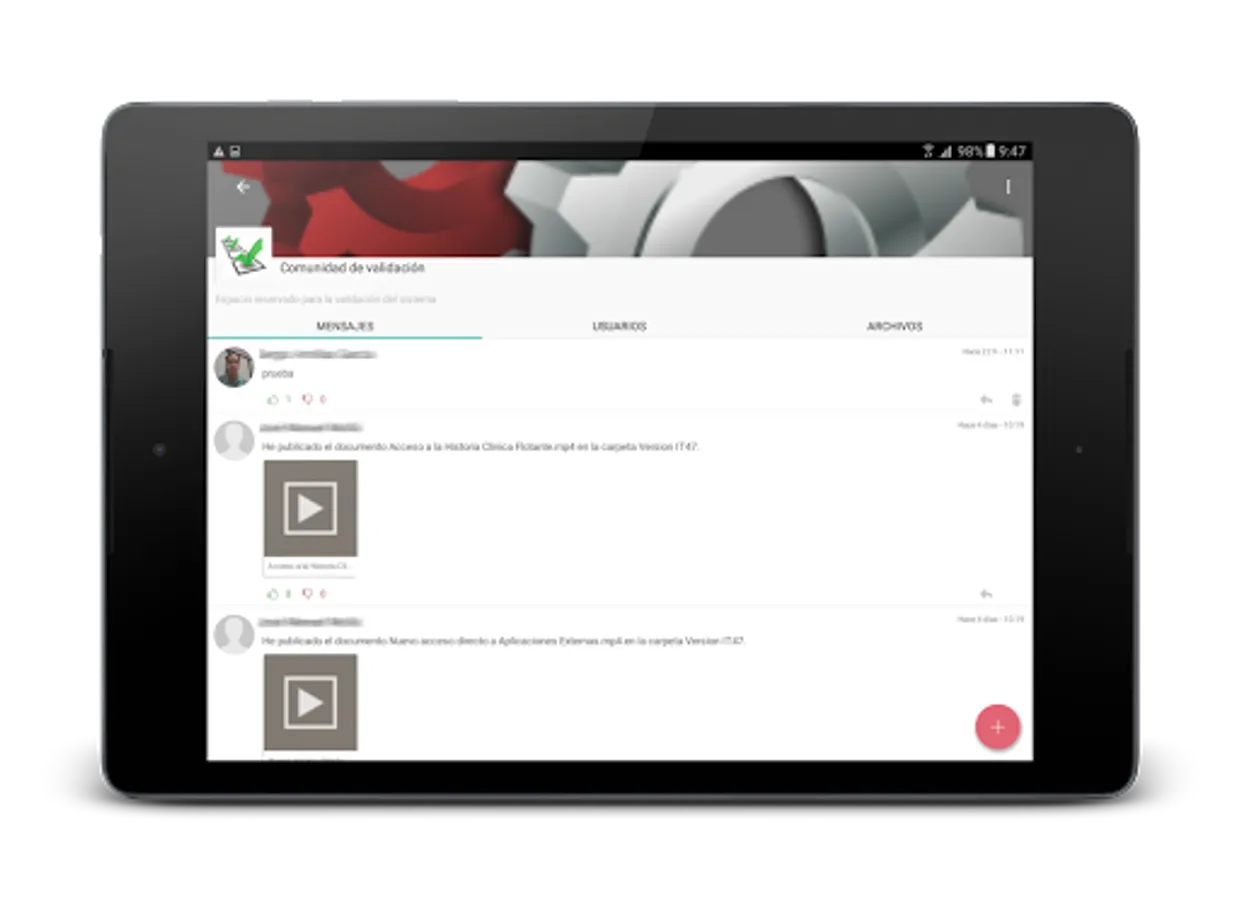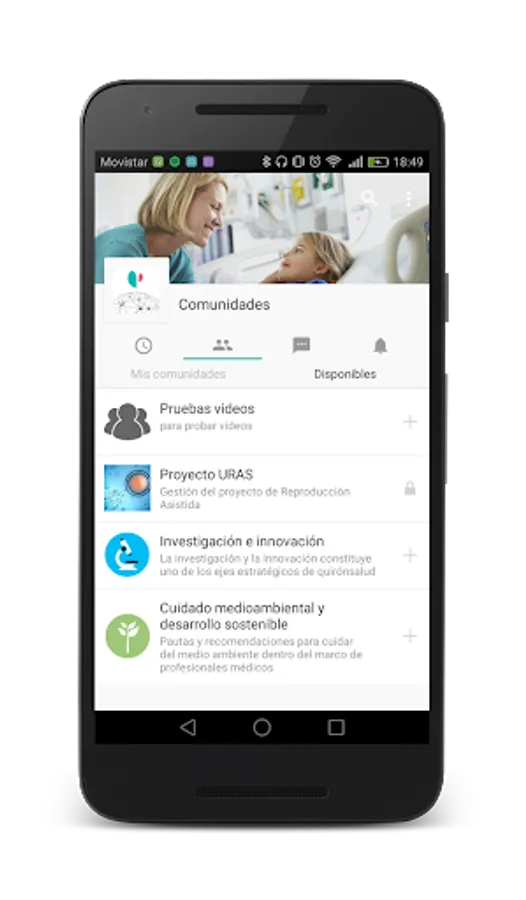 Application for professionals, to enable access to the collaboration platform Quirónsalud. This platform allows the creation of spaces where users can participate openly and leave opinions, discuss with other users and upload videos, images or documents that support the exchange of information within the different communities.