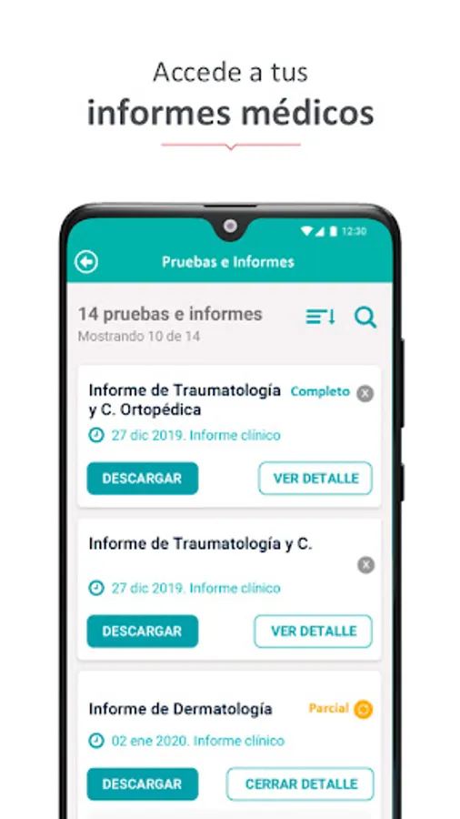 - Results of Diagnostic Aids of Diagnostic Images (X-Rays, Ultrasounds, Mammograms, MRIs, Scenographies and Fluoroscopy), Echocardiography or Tests performed by Non-Invasive Cardiology, Angiography, Nuclear Medicine or PETS. In all cases with the possibility of accessing the Images and reports associated with the studies carried out since June 2022.
