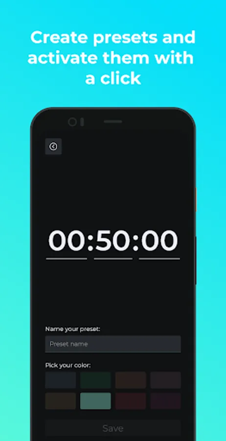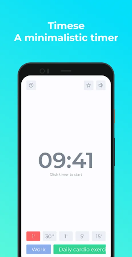 With Timese you can enjoy a minimalist timer as well as a complete one. Add the time you want with the quick action buttons and click on the clock to start the countdown. Or create presets in two easy steps and activate them when you need them just by tapping the setting you want.