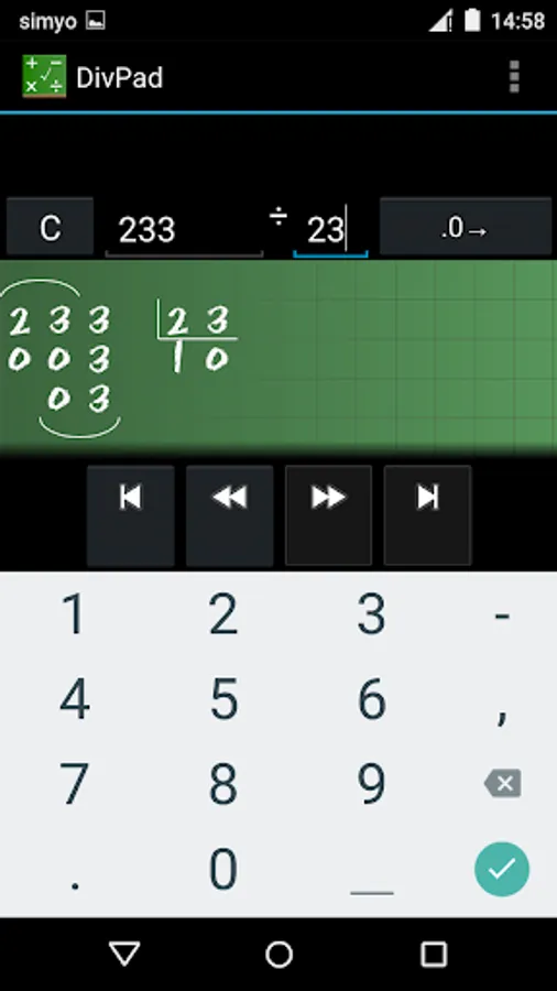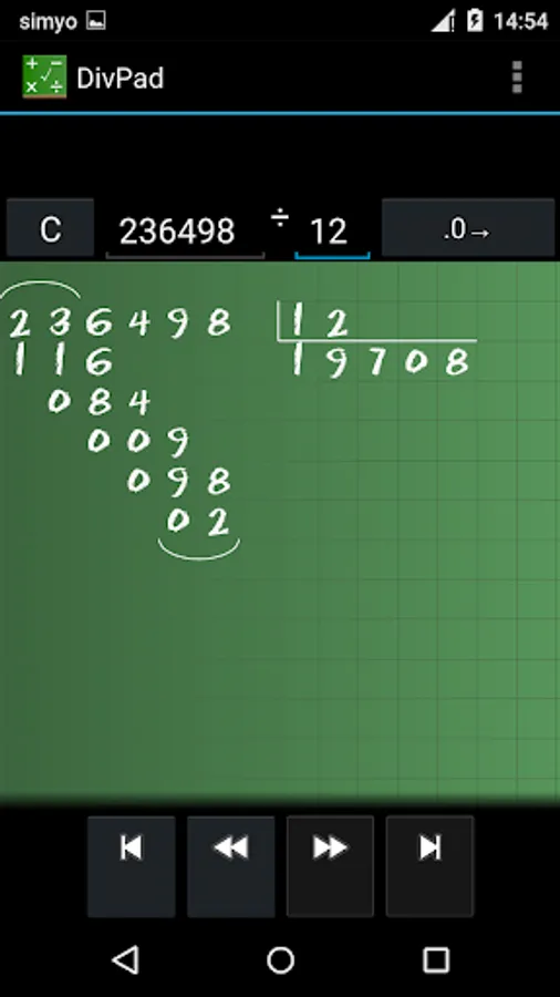 DivPad computes arithmetic operations on decimal numbers, providing detail on each step, as if done by hand on a blackboard.