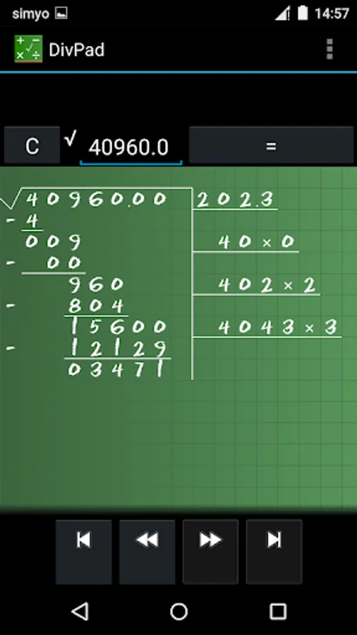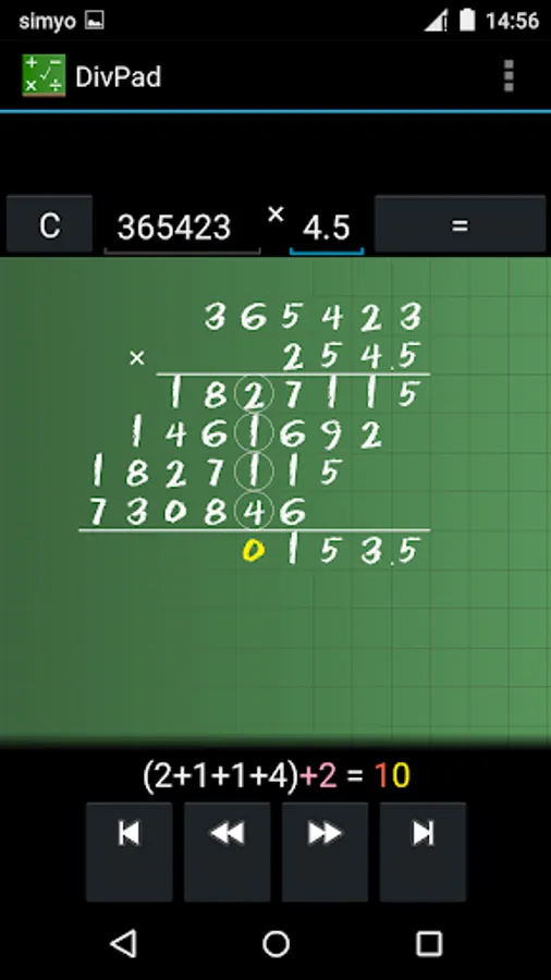 The procedure can be 'replayed' to review individual steps. Useful for learning and checking math homework.