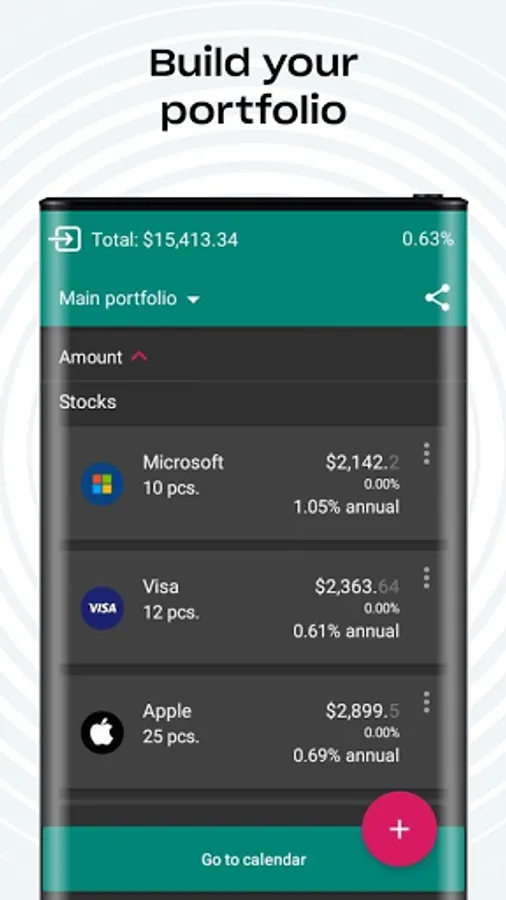 Divplan has more than 40 000 stocks, bonds & ETFs from Nasdaq, Frankfurt, London Exchange, including Apple, Visa, Facebook, Mastercard, etc.