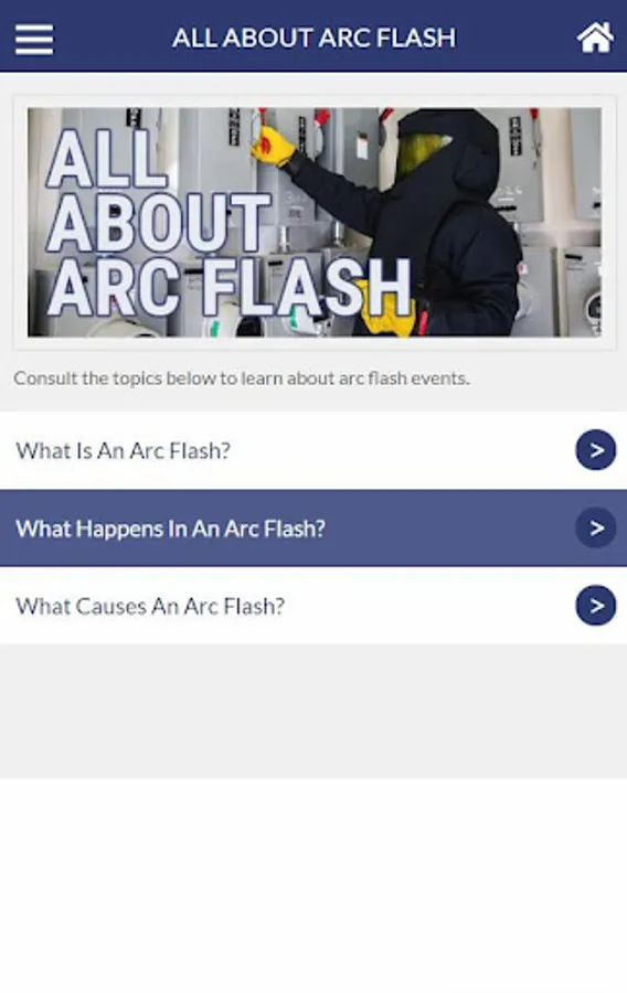 Protect yourself from deadly arc flash hazards. Learn the common causes of arc flash accidents. Pick out the right PPE for the job. Get help on reading equipment labels. Quickly access relevant OSHA and NFPA standards on arc flash protection. Download this app and stay safe!