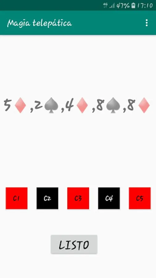 When the 5 spectators have finished saying the color of their card, the magician shows the screen of his phone. In it they appear the 5 cards that the spectators have.