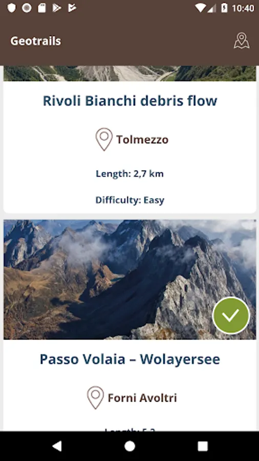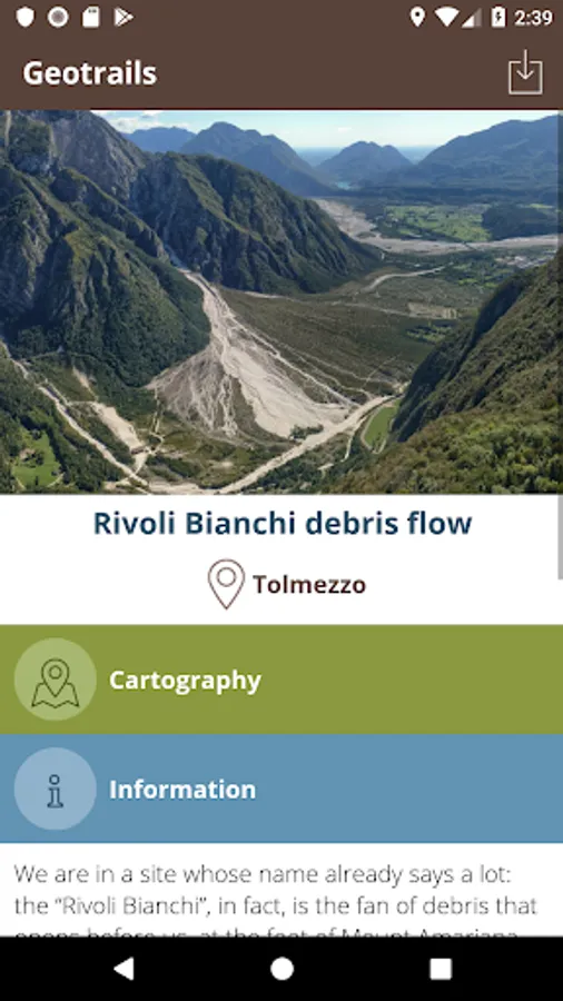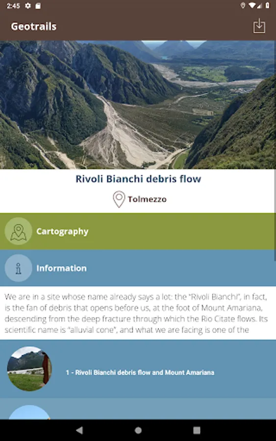For each itinerary, the data sheet provides a detailed trail each single geostop, locations in which it is possible to observe the peculiar geological characteristics of the area. Moreover, the necessary equipment, the most suitable period in which to visit and the relative altitude are specified.