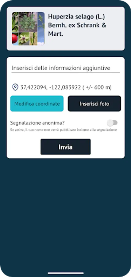 The app was created thanks to the contribution of the National Biodiversity Future Center.