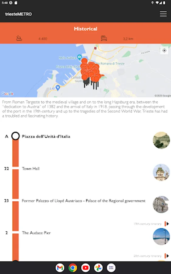 TRIESTEMETRO is the official app of the Municipality of Trieste: lots of routes just like a metro but ones that you follow on foot.