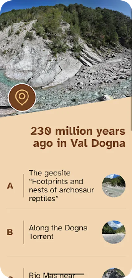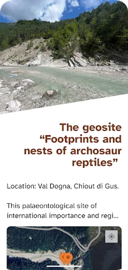 The app lets you engagingly explore the area’s geosites through an interactive map, an audio guide for both adults and children, images, illustrations, documentary videos, and 3D models.