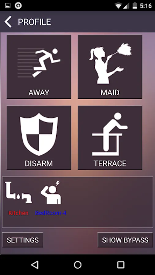 The app comprises of a very strong alarming system to acknowledge the users in event of unwanted incidents as per the security profile the home is armed with