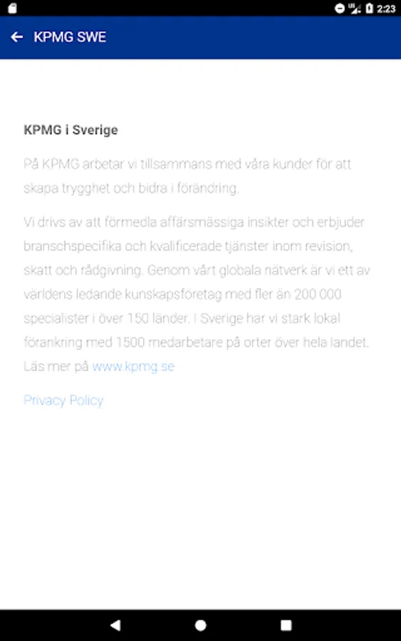 App for participants of KPMG Sweden events. More information about events at: https://home.kpmg.com/se/sv/home/events.html