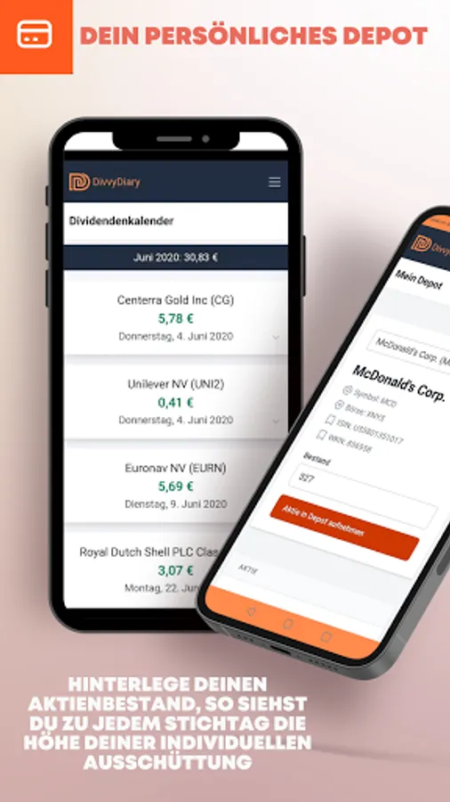 Simply insert your current stocks into your personal portfolio. On the individual payment date, you'll see the amount of your dividend earnings.