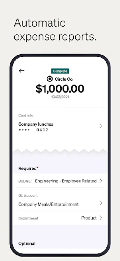 Live expense reporting and insights enables you to keep track of your company's expenditures as they occur.