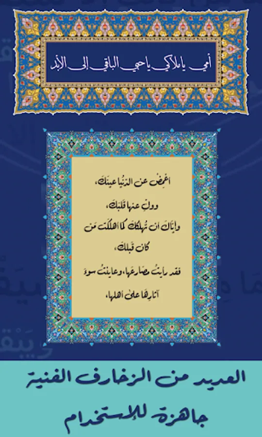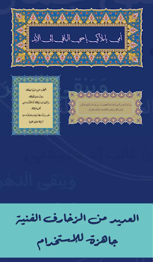 In addition, you can enhance your design with quotations from the Holy Quran in beautiful calligraphy. Choose from any section of the Holy Quran using our built-in glossary of the complete text in very easy and simple steps.