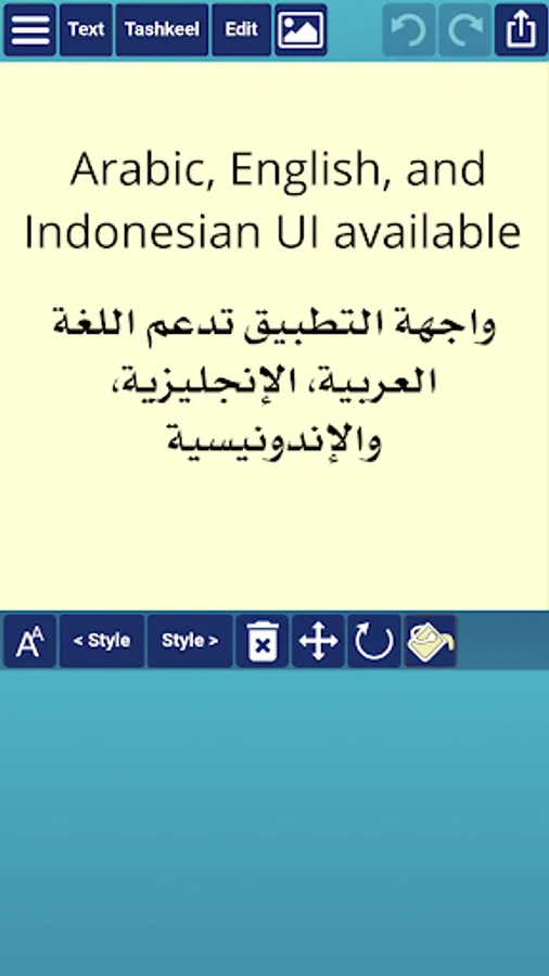 - Choose either Arabic, English or Indonesian UI [user interface] and menus.
