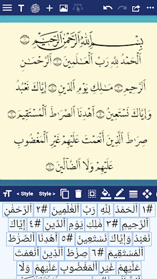 - Insert Quranic text using Mishafi Gold or Silver with search capability (full Quran available as In-App Purchase).