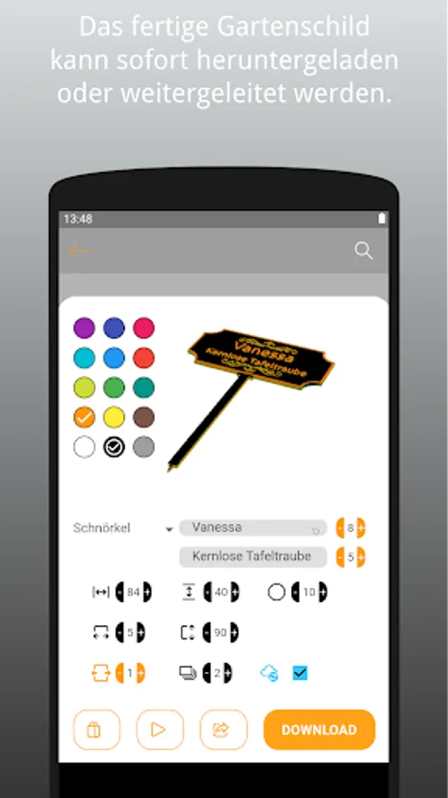 Here you can design garden signs with your own text with individual design and size. Numerous templates are already available.