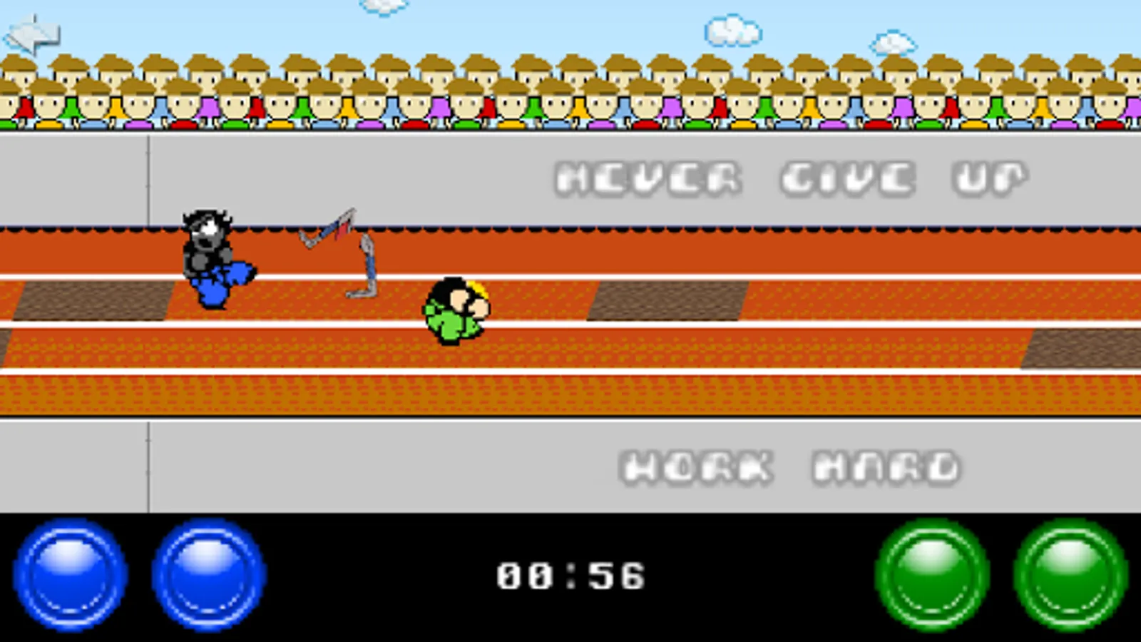 Hilarious and easy to learn two player game on a single screen! Race against your friend in a fast-paced hurdle game.