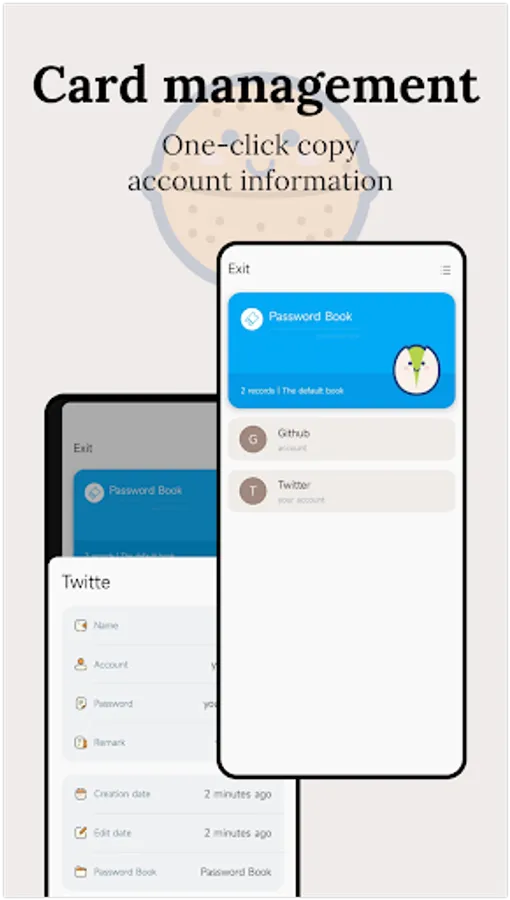 4. Support biological unlock, background automatic lock, backup and other functions, easier account management.
