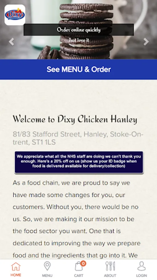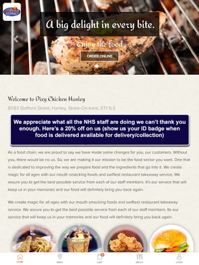 We're also available for ordering on https://dixystoke.com/storemenu and also on https://kuick.com/order/dixy-chicken-hanley