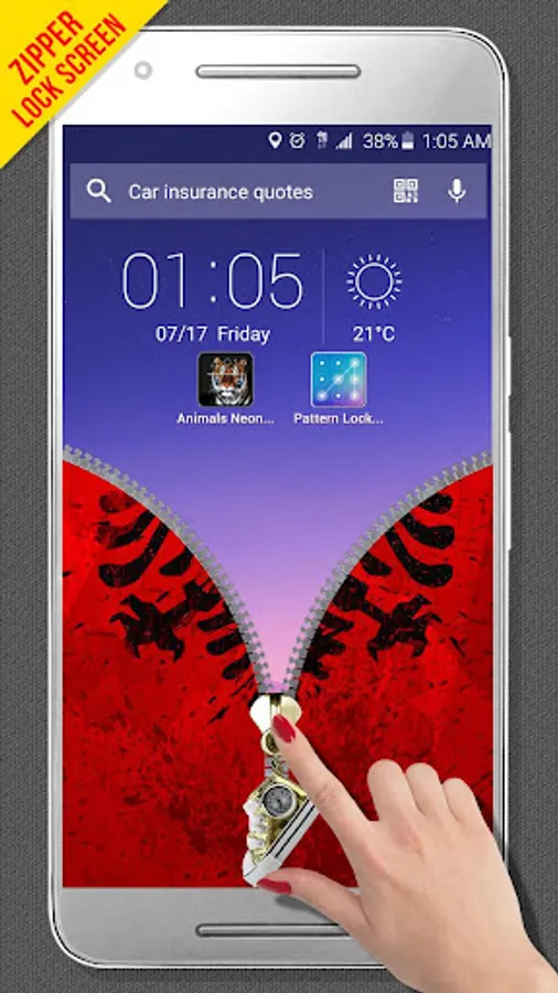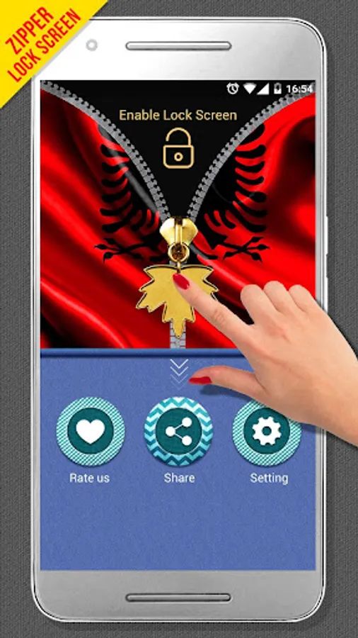 Albania Flag Zipper lock screen looks like a real zipper lock and contain sounds for unlocking and opening zipper,Just unzip with pendant by sliding to open Zipper Lock Screen