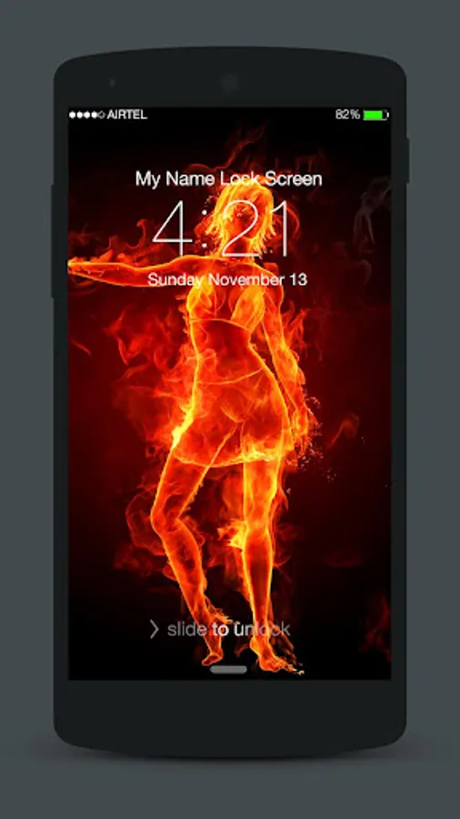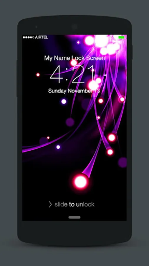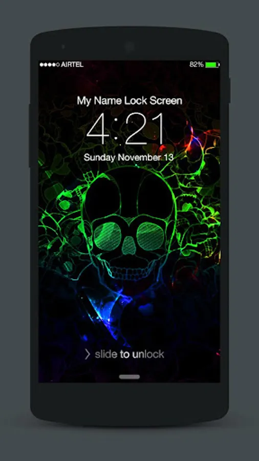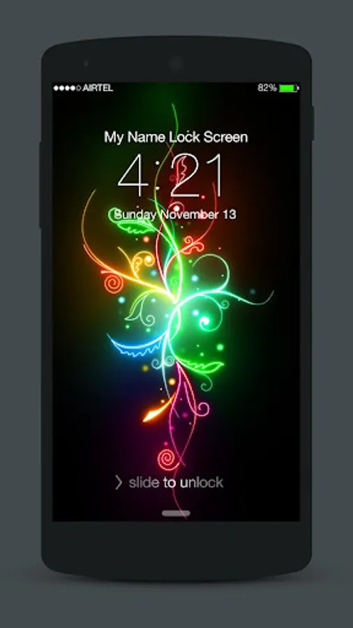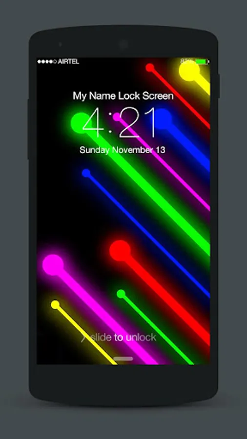 You can customize your sliding text as what you want such as My Name Lock Screen.