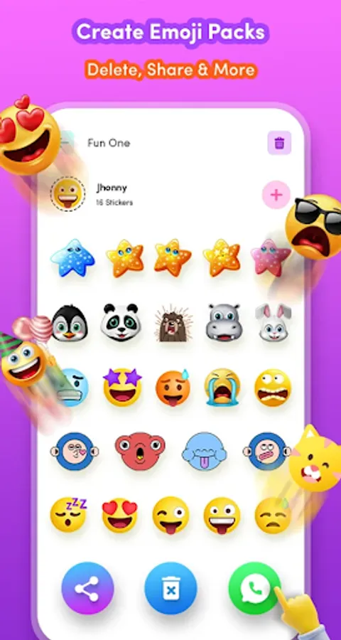 âDIY Sticker Makerâ provides different kinds of sticker emoji and sticker making decorations. When you make WhatsApp stickers, you can add some sticker decorations to make more funny and outstanding WhatsApp stickers or WhatsApp Business stickers.