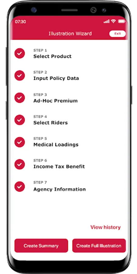 The app provides a summary mode to review the cash-value generated, and a pdf view for full illustration as per the SECP format.