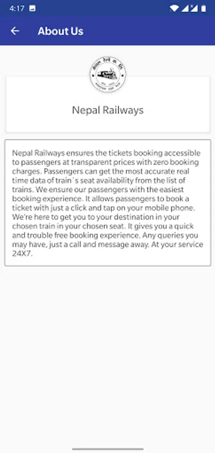 Nepal Railways App is solely developed for customer so that the customers willing to travel by Train can easily get their Ticket booked through digital Medium without visiting to Train Station and get their Ticket Online. Customers can get their Seats booked Online with the help of eSewa.