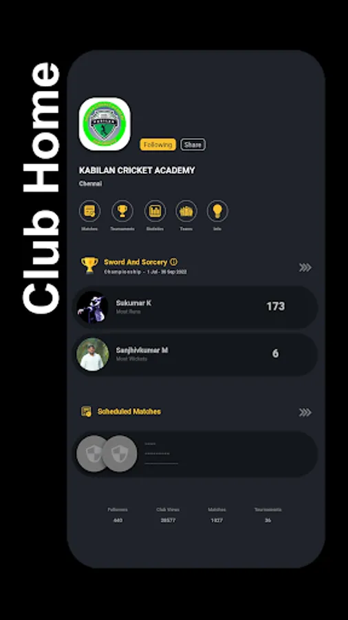 # This is the best scoring app which allows you to manage all your organisation's matches and tournaments under a club and gives you the stats of players and teams with a great user interface.
