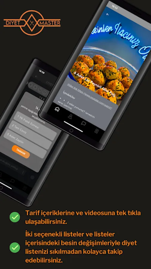 It is the first and only diet program where you can create unlimited options with TWO DIFFERENT LISTS, NUTRITIONAL CHANGES AND RECIPES for each meal, without being tied to a single list, and where you will never get bored and hungry. However, all you have to do for your list change is to write to your dietitian! Your dietitian will also see your preferences in the diet and will give you suggestions in line with your preferences.