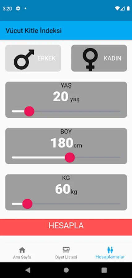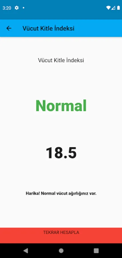 The calculation is made in accordance with the obesity test data of the Republic of Turkey Ministry of Health and the World Health Organization. As a result, it indicates your condition (Underweight, Normal, Overweight) and your ideal weight. Body Mass Index ideal ratios were taken as 21 for women and 24 for men.