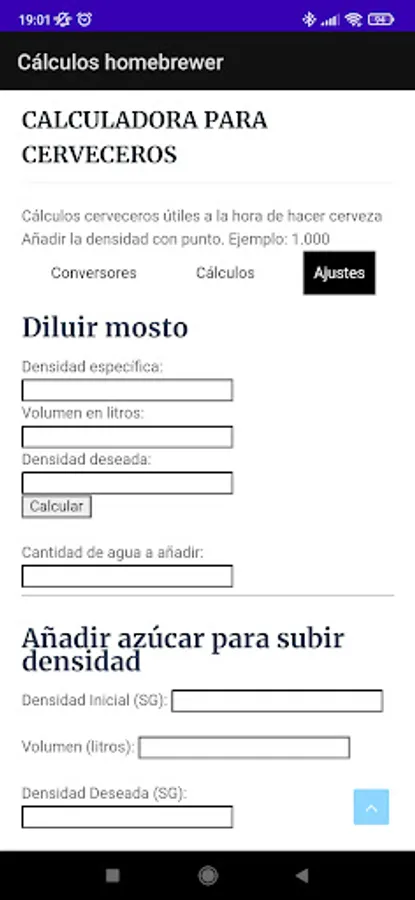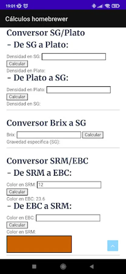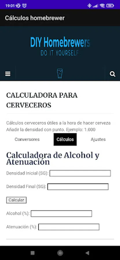Calculator of necessary parameters for the elaboration of Home Beer.
