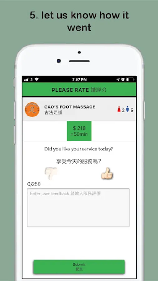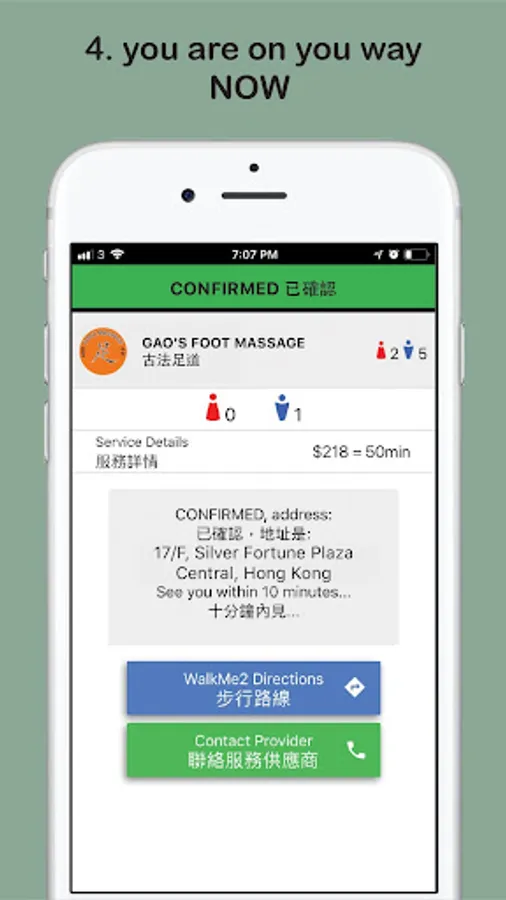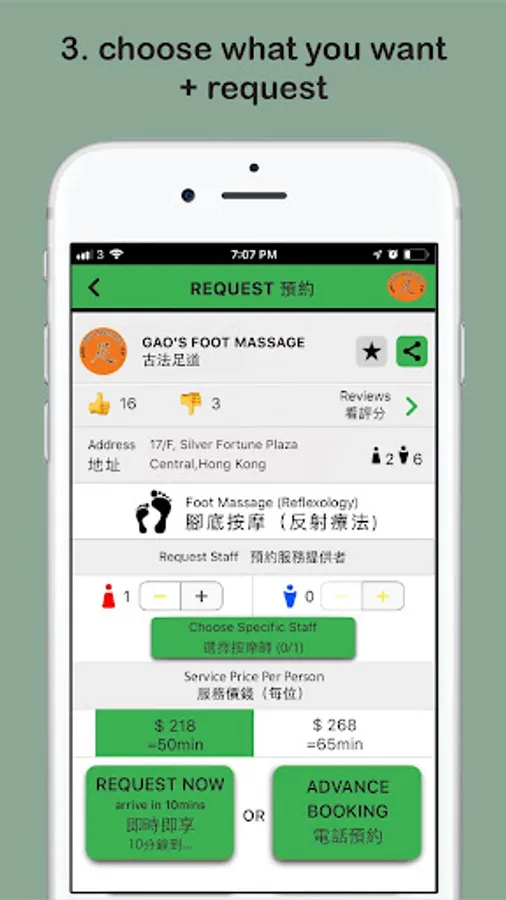 The Gao's massage app allows you to request services in the realtime "NOW", you can request a Foot massage, Oil body massage, Pressure point body massage or other services at an instant.