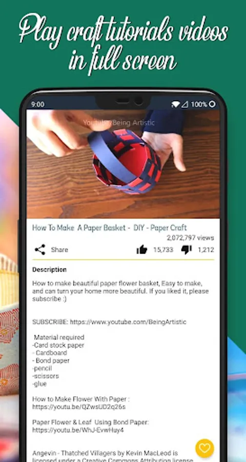 You can learn step by steps paper crafts using this app. You will need some basic stuffs like paper, scissors, glue, taps etc to do paper craft. There are many easy diy craft video tutorials. Paper Crafts is most popular hobby for teenagers. You can also decorate your house by creating beautiful paper crafts night lamps, flowers, boxes, bags and much more.